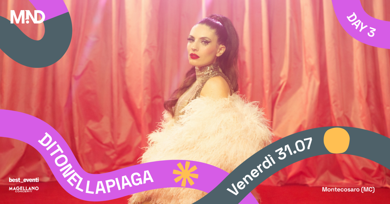 Ditonellapiaga, pseudonimo di Margherita Carducci, è una cantautrice dallo stile innovativo e camaleontico, che sa incarnare le infinite articolazioni dell’animo femminile, spaziando con versatilità tra generi e sonorità.